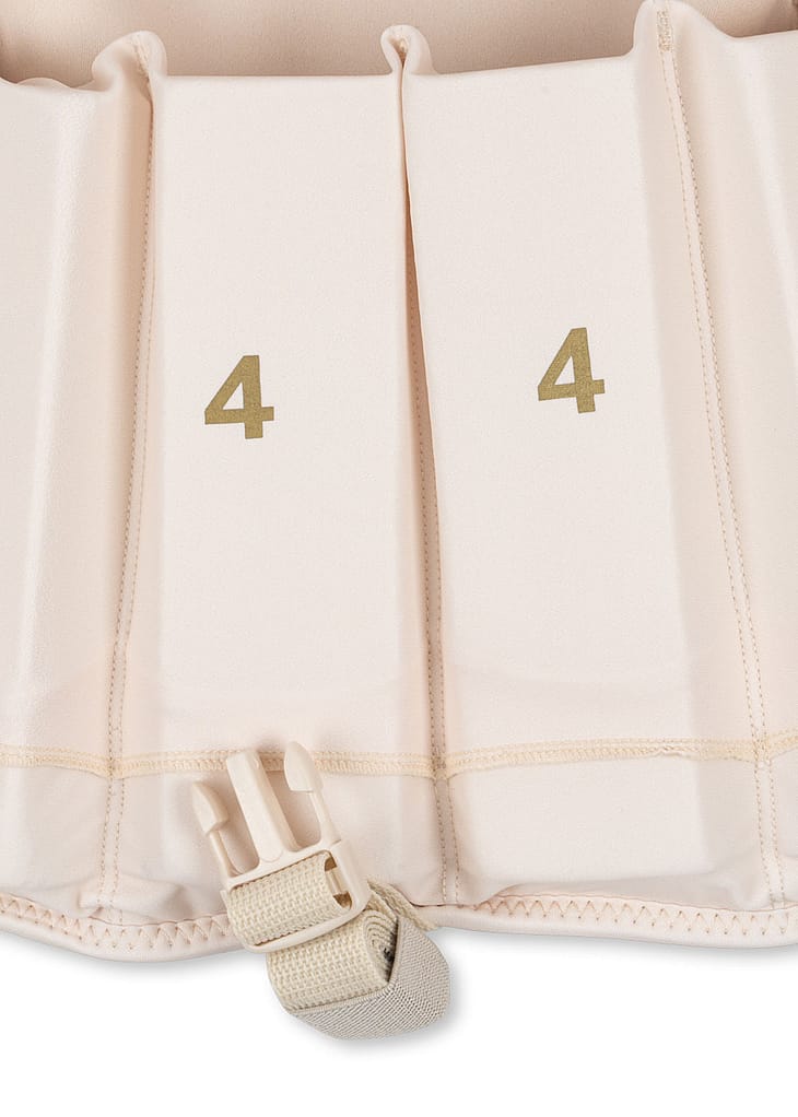 Vores svømmeveste er designet med indvendige skumstænger, der kan justeres efter barnets færdigheder og behov.