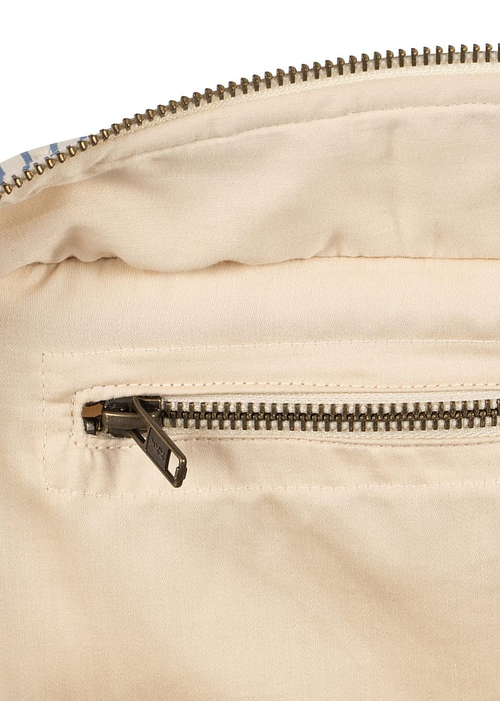 Stor vatteret toilettaske med ét stort rum og en lille indvendig lomme. Toilettasken har blød polstring, så indholdet kan opbevares sikkert. Lukkes med lynlås.