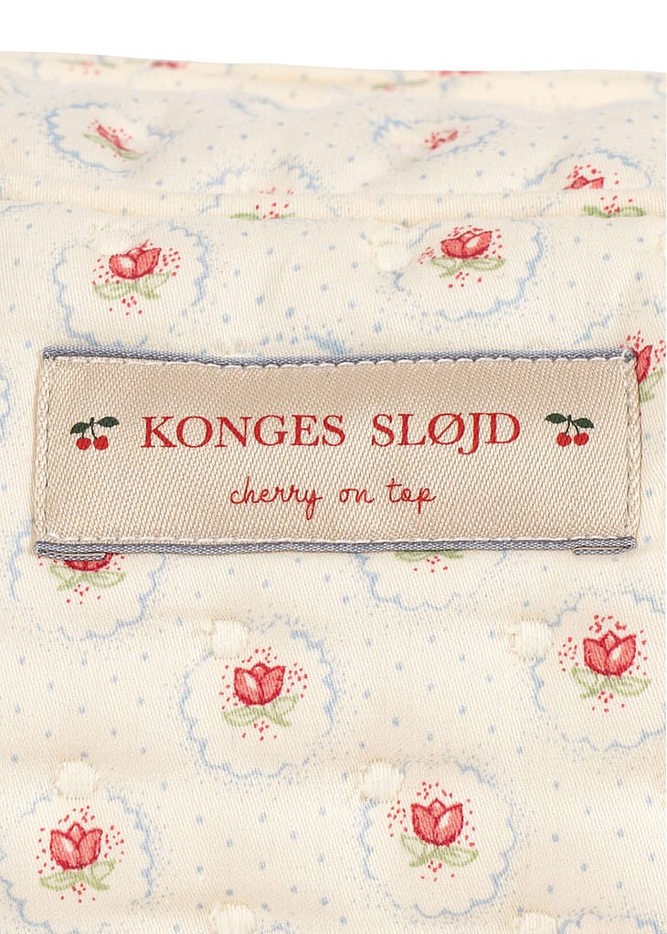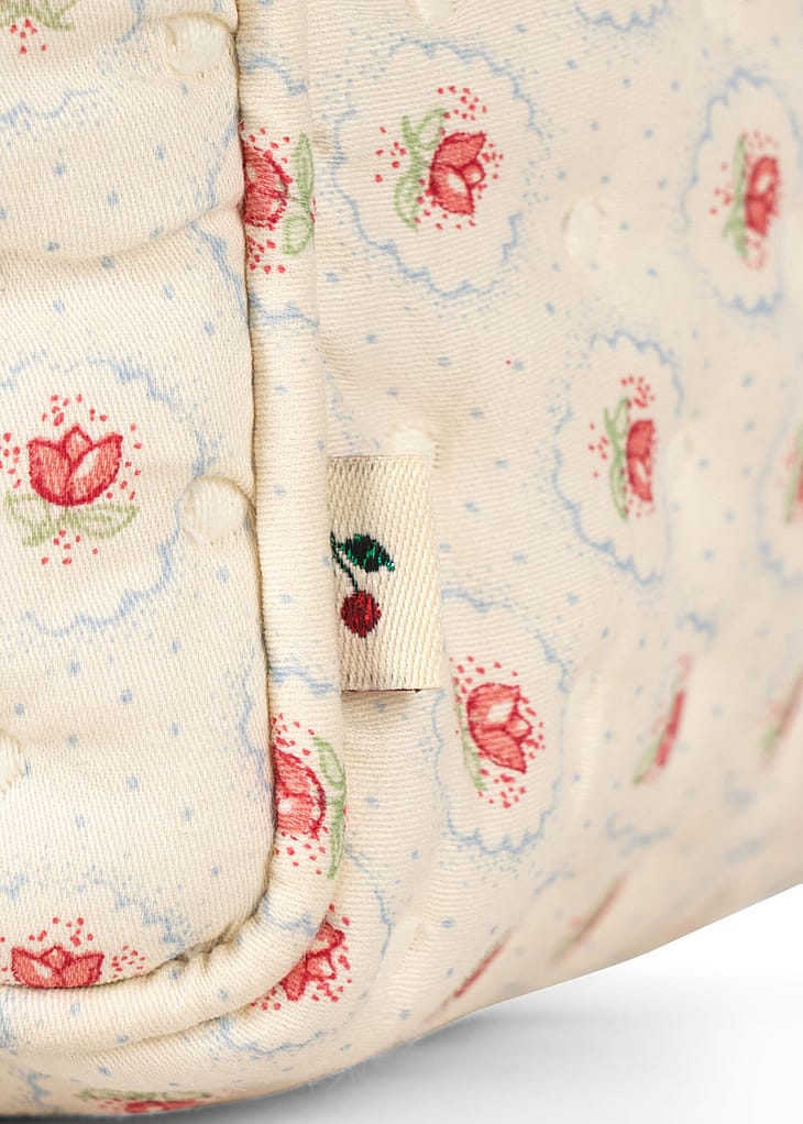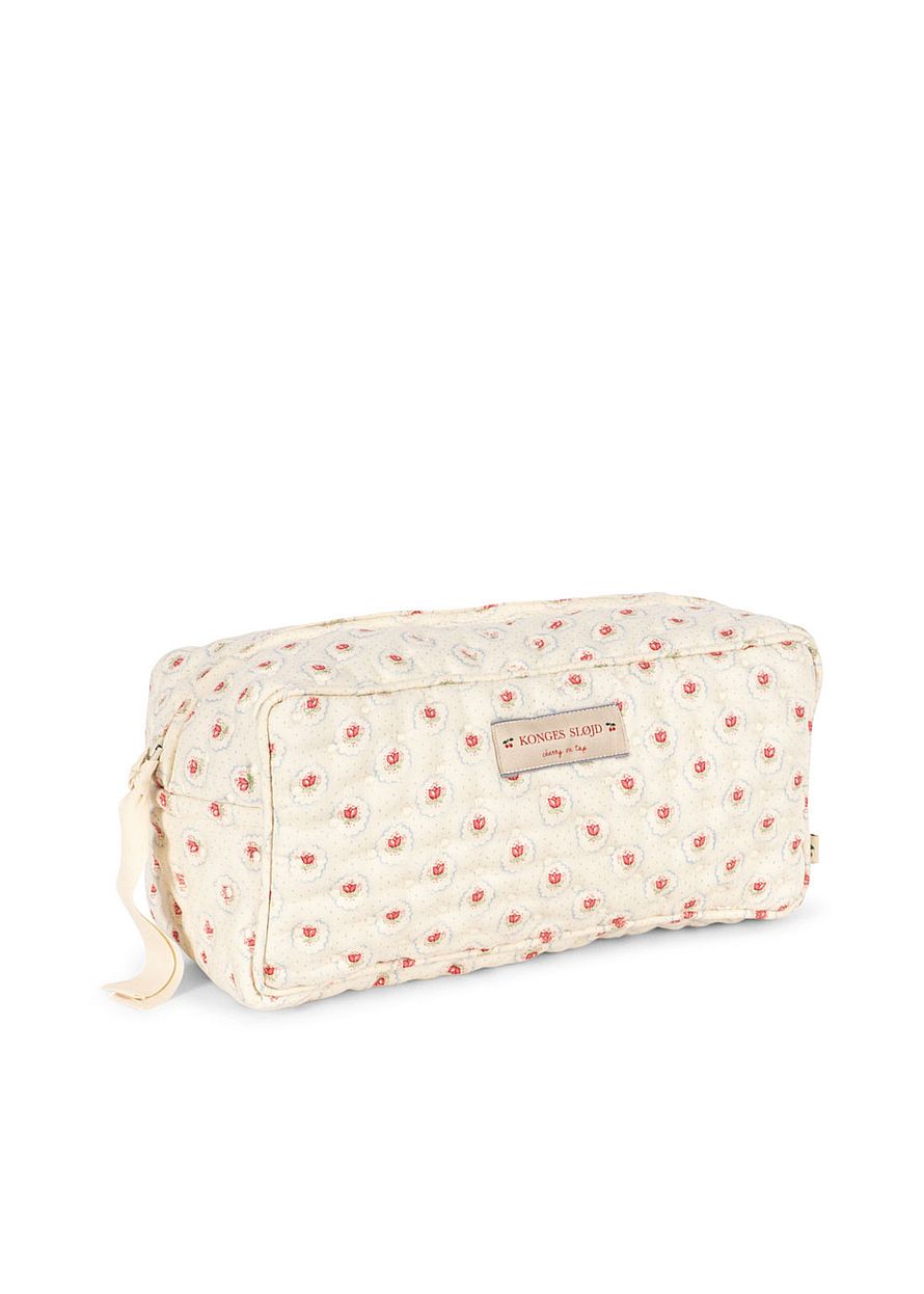 Lille quiltet toilettaske designet med ét stort rum og en mindre inderlomme til småting.