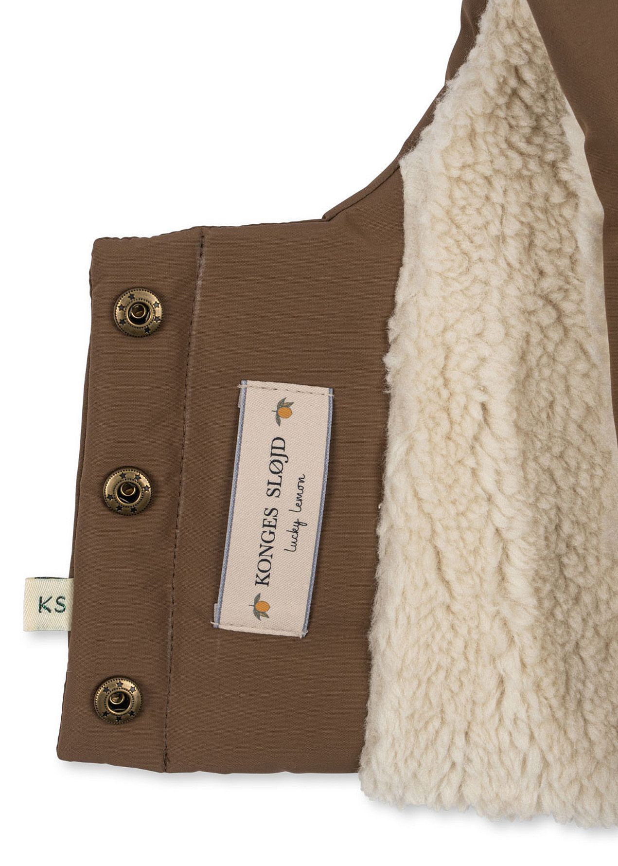 Varme vanter med blødt teddyfor. Nemme at sætte på alle typer barnevogne og klapvogne. Lukkes med trykknapper.