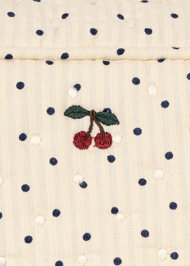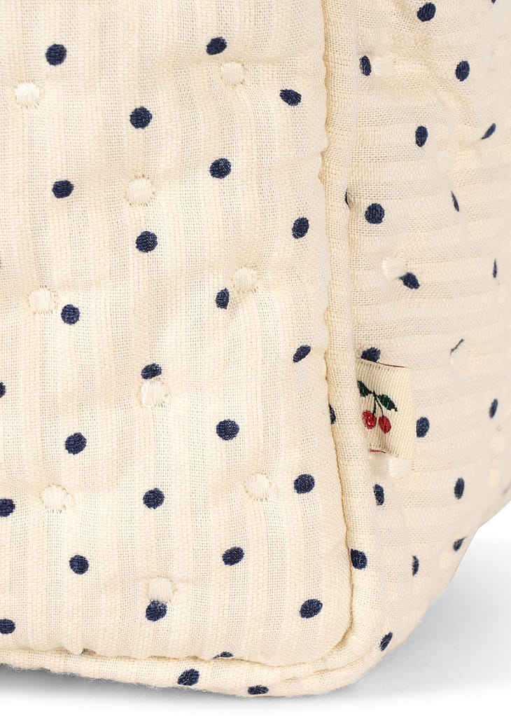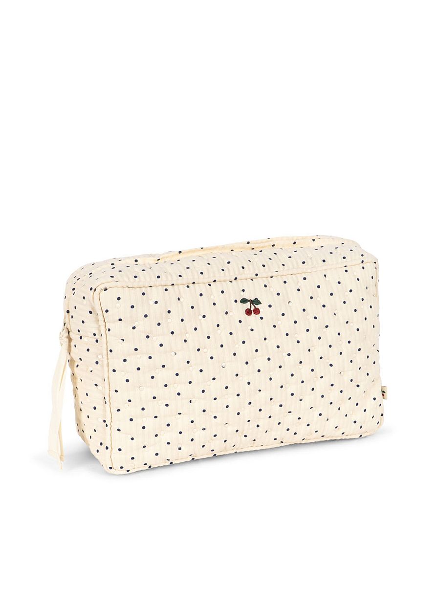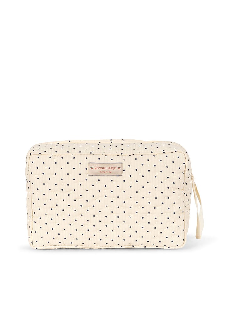 Stor quiltet toilettaske i økologisk bomuld. Designet med ét stort rum og en mindre inderlomme. Blødt vatteret for at beskytte dine ejendele.