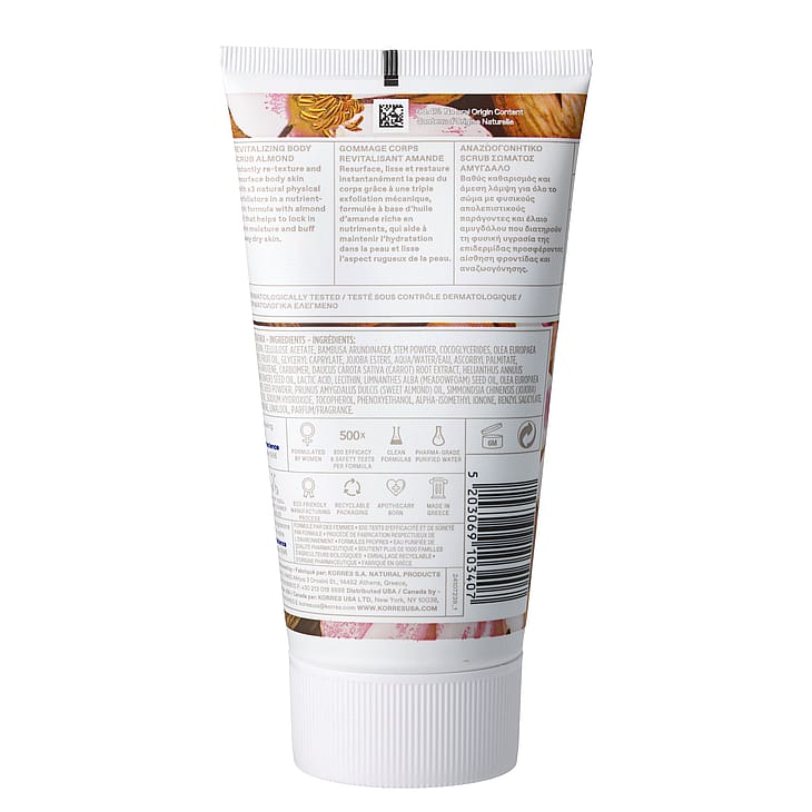 Restituér huden øjeblikkeligt, og genopliv den med tre naturlige fysiske eksfolierende ingredienser i en næringsrig formel med mandelolie, der hjælper med at låse hudens fugt inde og gøre det af med tør hud. Dermatologisk testet indhold af 90,4 % naturlig oprindelse