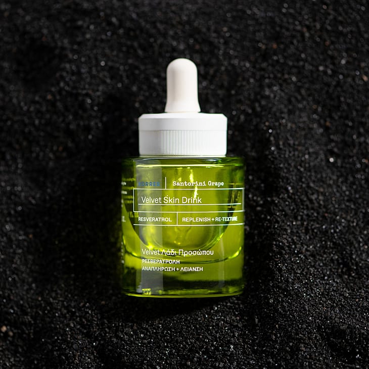 Gør din hud fløjlsblød med en enkelt dråbe hydrerende ekstrakt af vindruer fra Santorini, mens skønhedsfejl udglattes, og du får en glansfri glød. Aktive ingredienser: