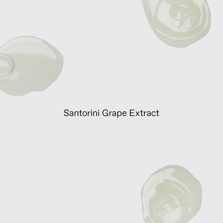 - EKSTRAKT AF VINDRUER FRA SANTORINI: Rig på antioxidanter fra den vulkanske aske, som de vokser i. Nærer huden.