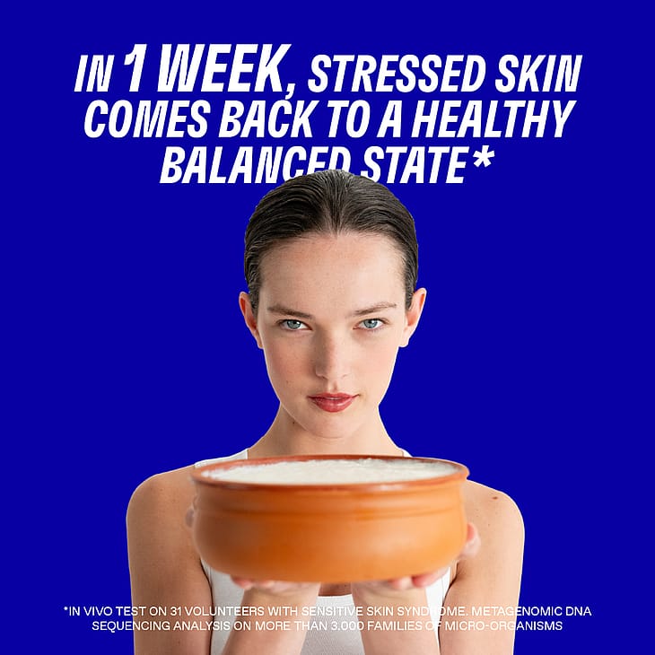 Den er designet til at tilpasse sig forskellige hudtilstande ved at genoprette balancen i en stresset mikrobiom og styrke hudbarrieren.