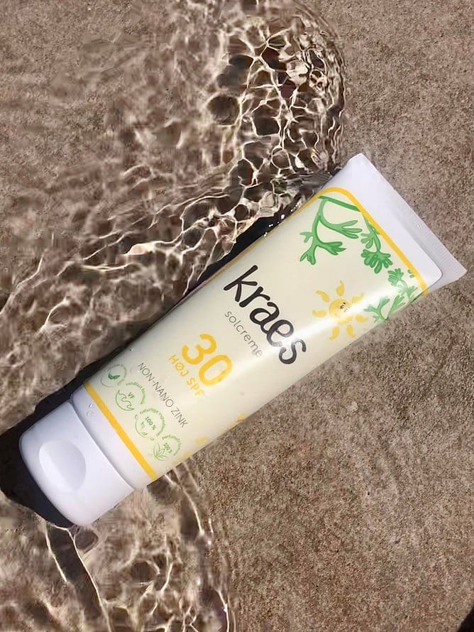 KRAES solcreme SPF 30 er en 100% naturlig og vandfast solcreme til nem og effektiv beskyttelse imod solens UVA og UVB stråler. Ideel til hele kroppen og alle størrelser – også de helt små. Udviklet med et naturligt solfilter (non nano zink), der hvidter minimalt.
