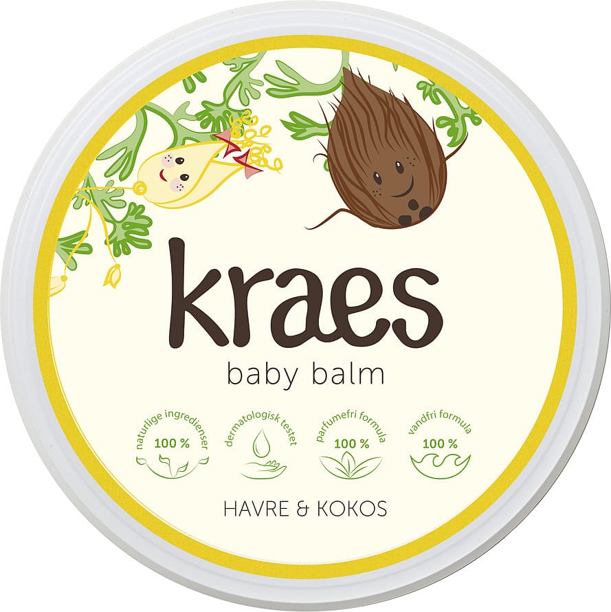 KRAES baby balm er en 100% naturlig og dermatologisk testet fedtcreme, udviklet specifikt til lindring af tør, irriteret og kløende hud.