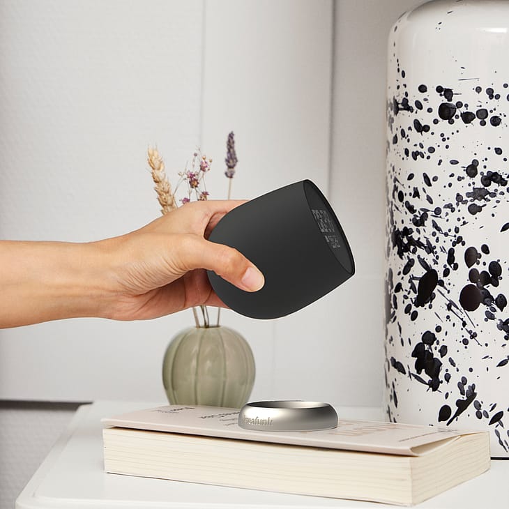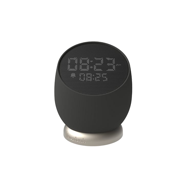 For at slukke alarmen skal du trykke på knappen, og for at snooze løftes den op og vendes på hovedet. Det betyder, at du slipper for at famle rundt i mørket eller kæmpe for at finde snooze-knappen.