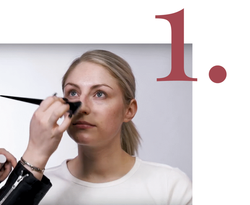 Efterfølgende bruger Line den helt nye foundation fra KVD Vegan Beauty, True Portrait Foundation. Hun bruger KVD Vegan Beauty Lock-it Edge Foundation Brush til at påføre produktet. Når foundationen er blevet påført i hele ansigtet, bruger Line sine fingre til at tappe produktet ind i huden.