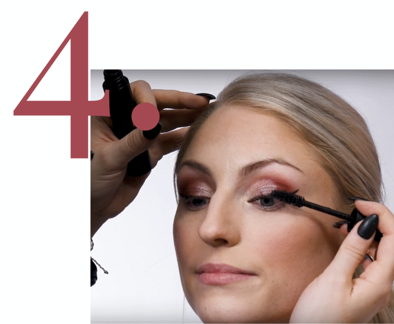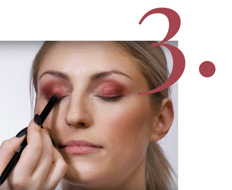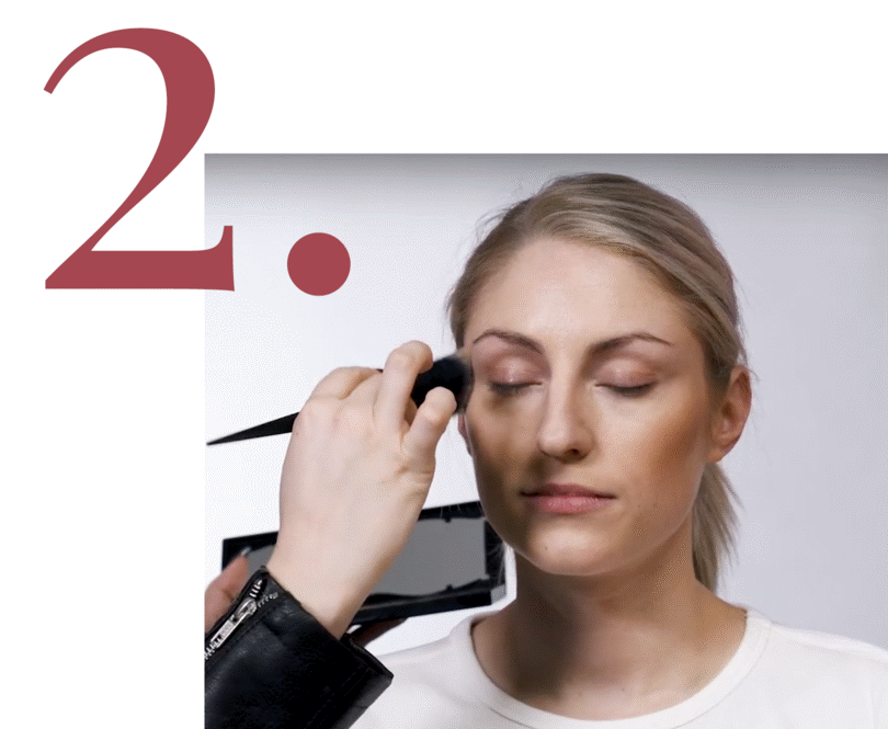 Hun dubber farven på med en børste, samme sted som hun lagde blush på øjet. For at få spil i den metalliske øjenskygge fokuserer Line på midten af øjenlåget, og blender den ud i blushen.