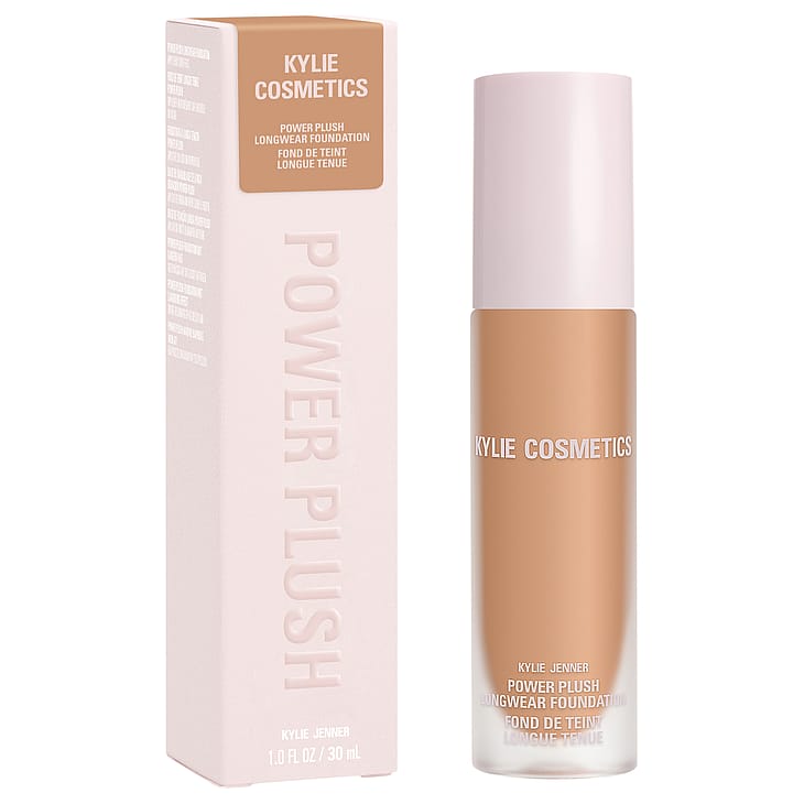 Power Plush Longwear Foundation fra Kylie Cosmetics er en fugtgivende og udglattende foundation med medium, opbyggelig dækkeevne. Den lette formel smelter ind i huden og har en blurrende effekt på porer, linjer og tekstur, hvilket giver en blød, fejlfri finish med op til 12 timers komfort.