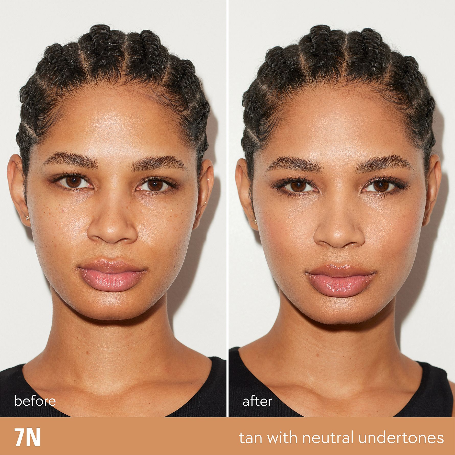 Påfør der, hvor du vil lysne, dække eller udglatte. Brug den indbyggede applikator og blend med Kylie Concealer Brush 02. Vælg en nuance tæt på din hudtone for at dække mørke rande eller urenheder, en lysere nuance til highlighting og en mørkere nuance til contouring.