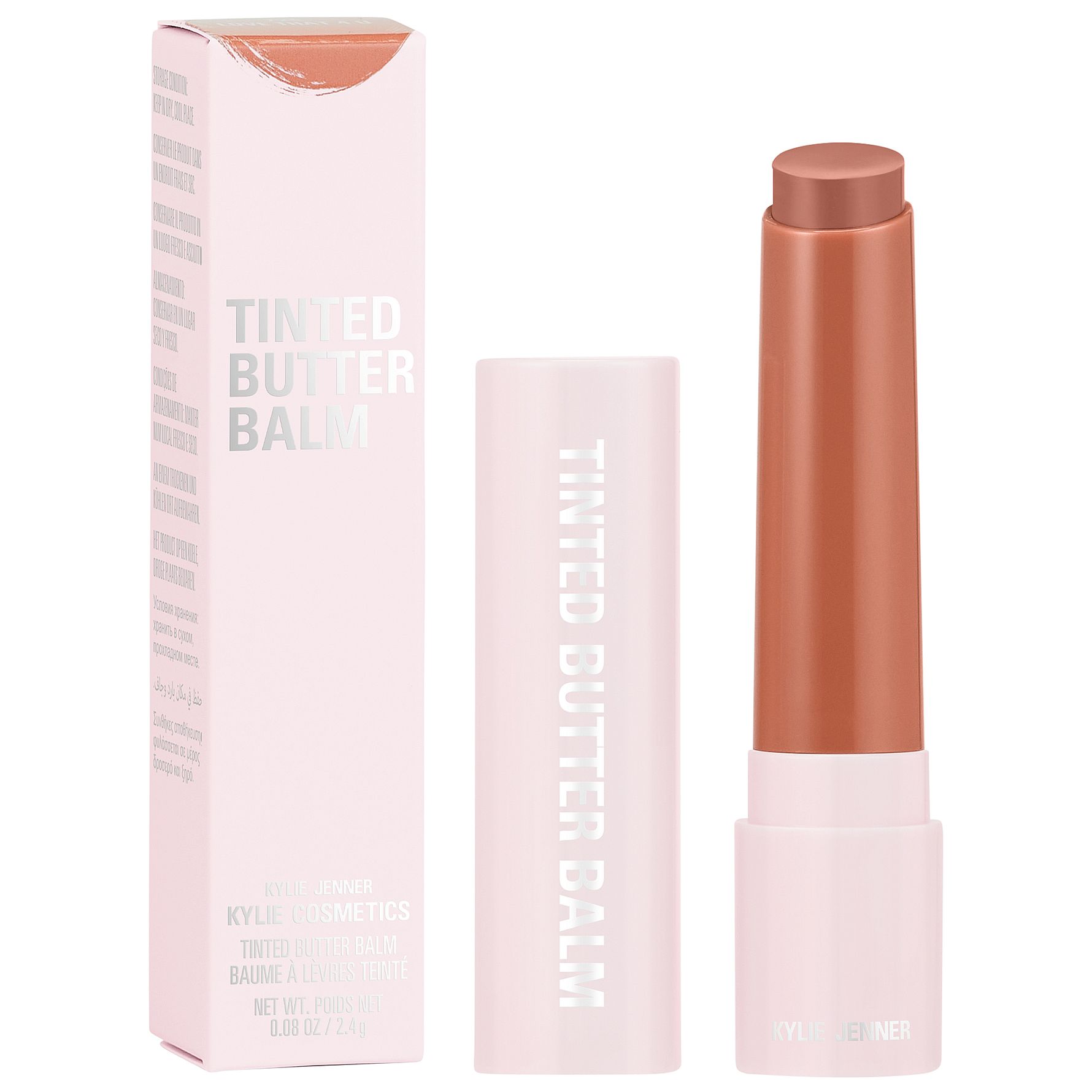 Tinted Butter Balm fra Kylie Cosmetics kombinerer læbepleje og farve i en 12-timers fugtgivende balm. Den smørbløde formel er beriget med jojobaolie, som giver fugt, udjævner linjer og blødgør tørre læber med det samme. Resultatet er en skinnende, pigmenteret finish med plejende komfort – perfekt til alle lejligheder.