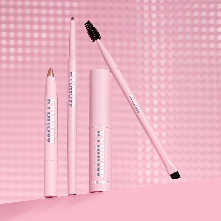 Hemmeligheden bag Kylies smukke, definerede øjenbryn. Med disse tre produkter kan du skabe "brows on fleek"! Brug først Brow Pencil til at tegne naturlige hårstrå og fylde ud og brug derefter Brow Gel til at fiksere øjenbrynene. Afslut med Brow Highlighter for et løftet look.