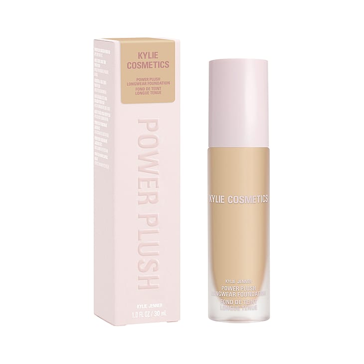 Power Plush Longwear Foundation fra Kylie Cosmetics er en fugtgivende og udglattende foundation med medium, opbyggelig dækkeevne. Den lette formel smelter ind i huden og har en blurrende effekt på porer, linjer og tekstur, hvilket giver en blød, fejlfri finish med op til 12 timers komfort.