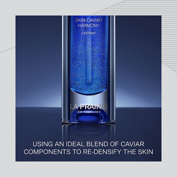 Skin Caviar Harmony L'Extrait er beriget med Caviar Infinite, og er et intensivt ekstrakt, der genskaber ungdomments harmoni ved at styrke huden og dens vertikale søjler. Over tid er hudens konturer redefineret, volumen er genskabt og rynker synligt reduceret. Ungdommens harmoni er genvunden.