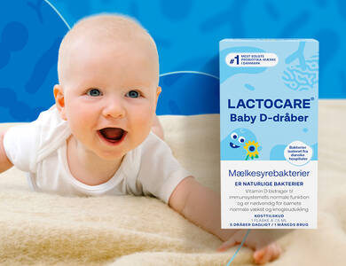- Lactocare Baby er Danmarks mest solgte D-dråbe og kan anvendes fra barnet er 2 uger gammelt.