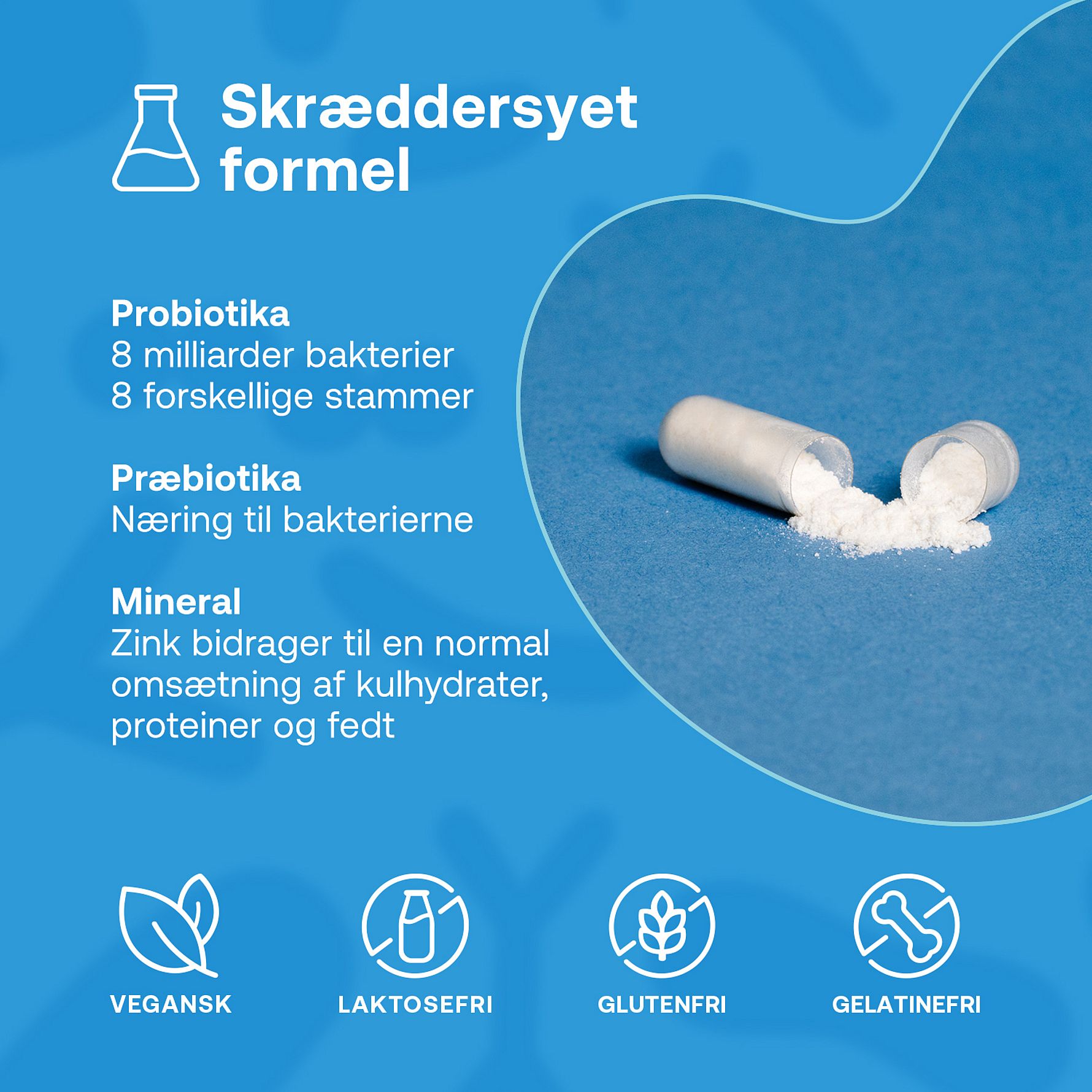 | Indhold pr. daglig dosis Mælkesyrebakterier / Probiotika: | pr. 1 kapsel |