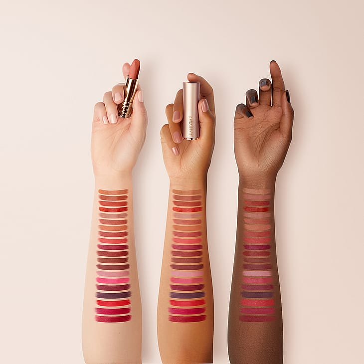Intimatte læbestiftens signaturspids er designet til at være præcis og nem at bruge, så du kan definere dine læber, som du ønsker. Den kan bruges på læber og kinder – du bestemmer, hvor du og din læbestift mødes. Påfør den direkte eller med fingrene for at få den bløde og slørede matte finish frem. Påfør den på kinderne som blush, bronzer eller til contouring.