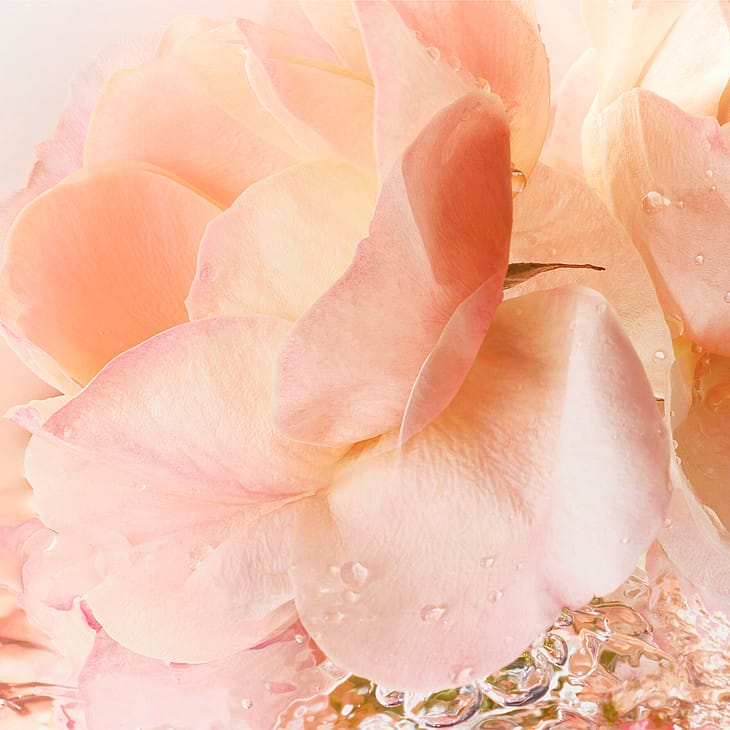 Blomstrende roser er fremhævet og bliver genfortolket for at frembringe friskhed og vitalitet, hvilket skaber et blændende blomsterboost.