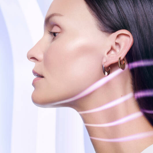 Trin 2: Fortsæt med de samme bevægelser, mens du glatter huden ud ved at følge ansigtets- og halsens kontur.