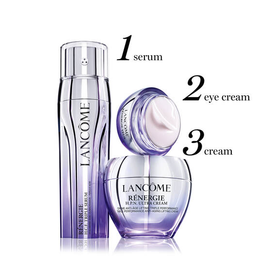 For første gang kombinerer Lancôme koncentrationer af HYALURONSYRE, over 300 PEPTIDER og NIACINAMID i en unik creme
