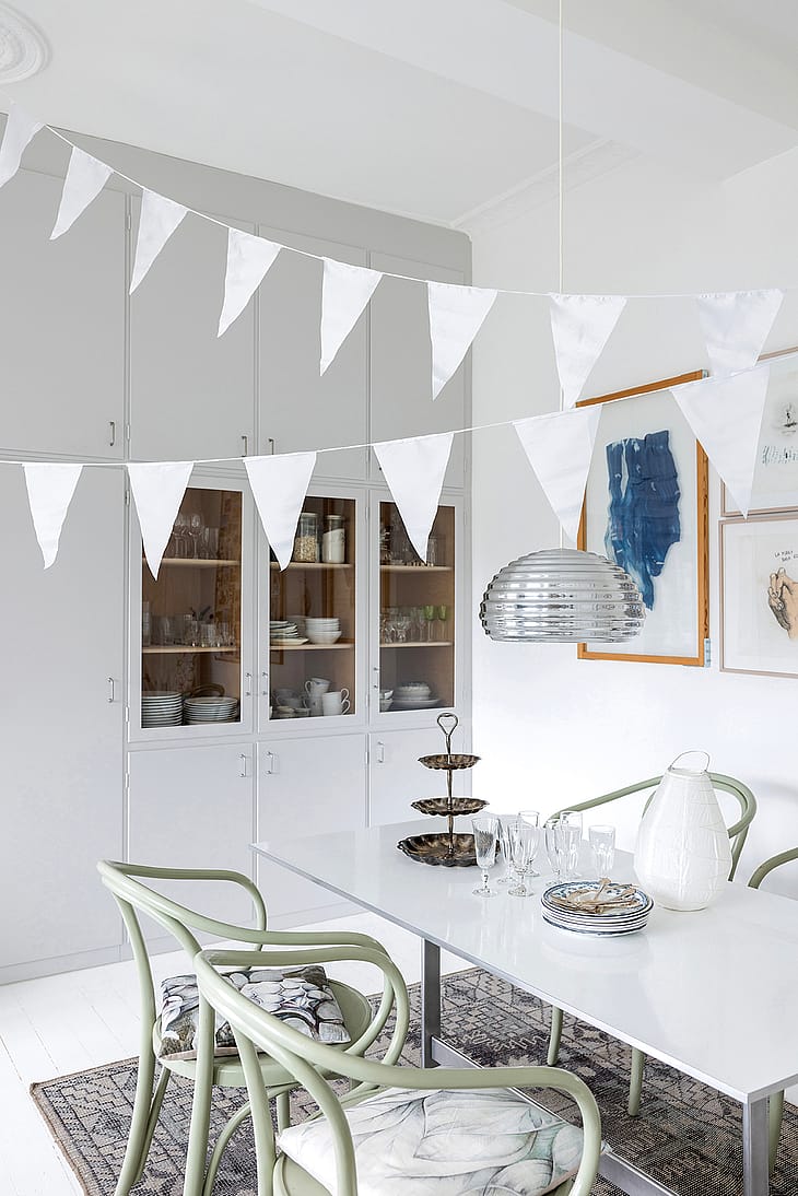 Smuk hvid vimpelranke til alle familiens fester udendørs som indendørs.