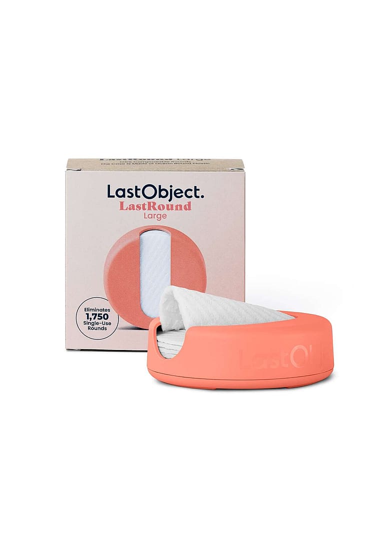 Denne version er omkring 50% større end den originale LastRound, og dens ekstra størrelse gør den ideel til hurtigt og nemt at rense ansigtet. Den større flade gør den også perfekt til brug på kroppen. Disse rounds vil føles meget stive, inden du påfører vand eller anden væske, men herefter vil de være mindst lige så bløde som almindelige vatrondeller.