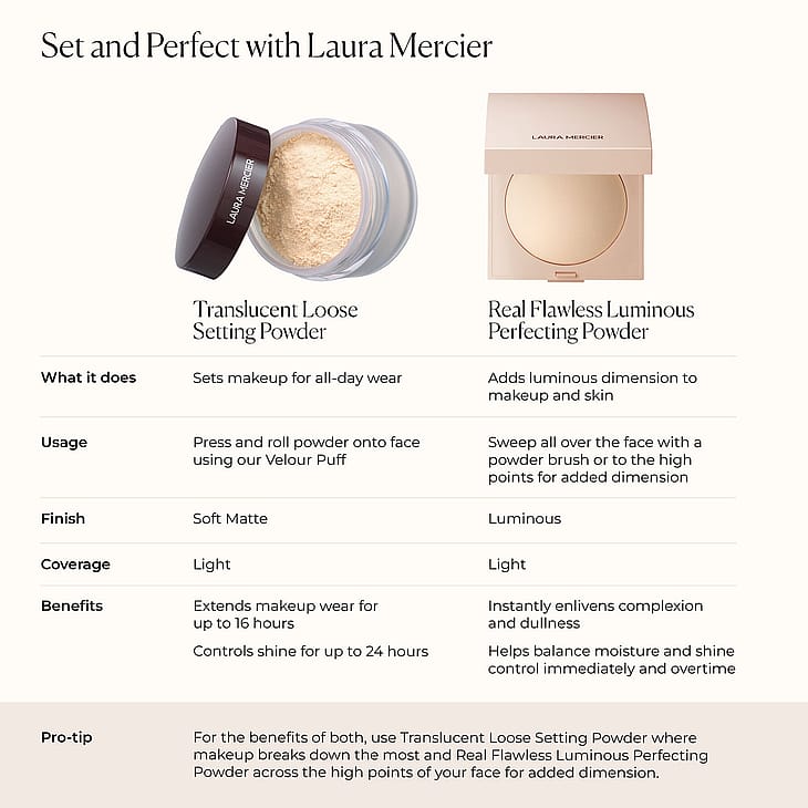 Påfør Real Flawless Powder som det sidste trin i din makeup-applikation og før Translucent Pure Setting Spray 16HR.