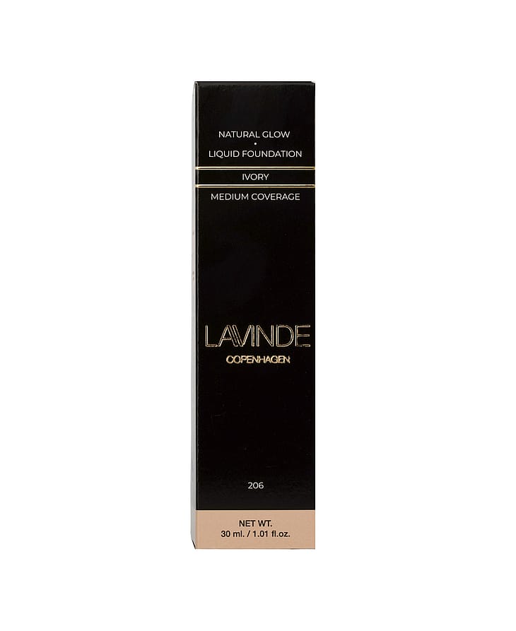 Den prisvindende Lavinde Copenhagen NATURAL GLOW Liquid Foundation, med medium dækkeevne, smelter ind i huden, fordi konsistensen er let som en fjer.