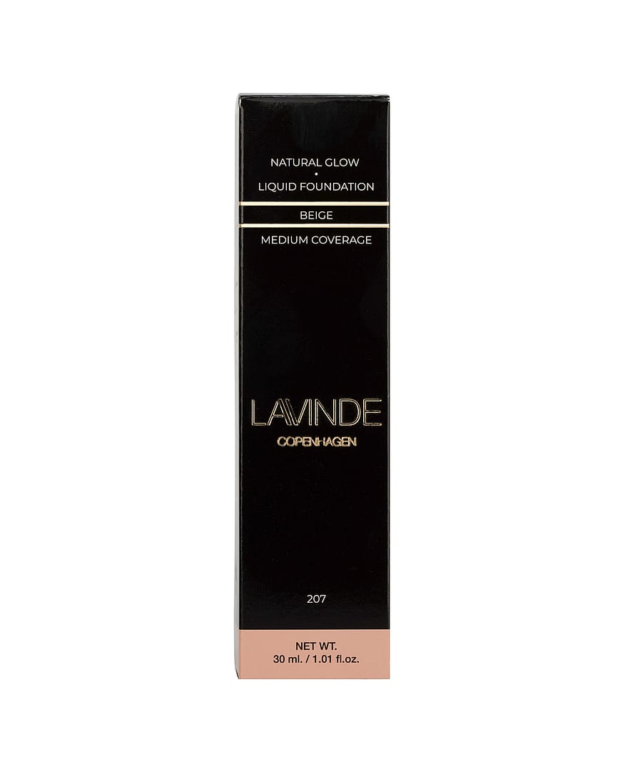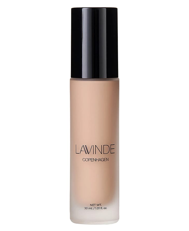 Den prisvindende Lavinde Copenhagen NATURAL GLOW Liquid Foundation, med medium dækkeevne, smelter ind i huden, fordi konsistensen er let som en fjer.