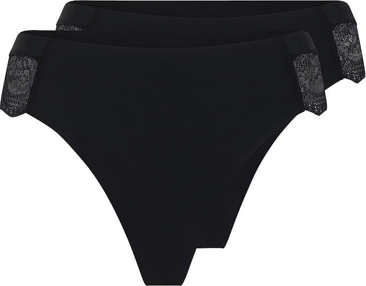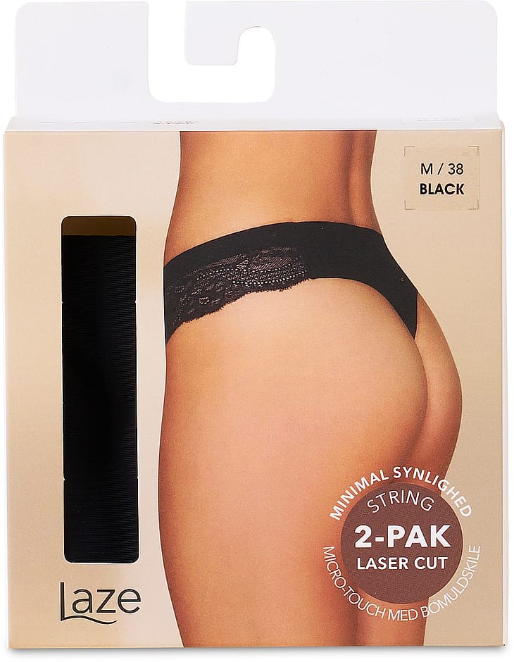 2-pak lækre, bløde string trusser med feminin blonde i siderne.