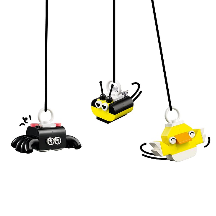 Farverige byggeklodser, byggelegetøj, kreative projekter og glade børn Assorterede klodser med 10 idéer, der er hurtige at bygge, og uendelige muligheder for ombygning Rolleleg med edderkop, bi, fugl, krabbe, abe, blomst, kamera og meget mere Omfatter ophængningselementer til udstilling og farvet papir til tegninger og beskeder LEGO® byggesættet til begyndere er en perfekt gaveidé til børn fra 5 år 680 elementer