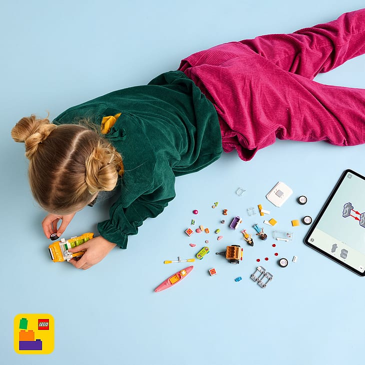 Et byggesæt med masser af inspiration til børns rolleleg LEGO® byggemodel af et køretøj med trailer, kajak og køleboks Indeholder 2 minidukkefigurer og en figur af en hundehvalp Tilbehøret omfatter kajak, skateboard, rulleskøjter, køleboks og meget mere En sjov gave til børn, der elsker venskabsbaseret rolleleg 220 elementer