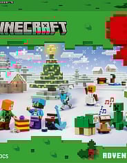 Bag hver af de 24 låger gemmer sig en gave, som børn kan opdage hver dag op til jul. Minifigurer omfatter Alex iført en Creeper™-sweater, Steve iført en snemands-sweater og diamanthjelm og med en hakke i hånden, en Creeper ved en sødebærbusk, en druknet med en trefork, en strejfer med diamantrustning, en snegolem, en zombie med en fortryllet økse og en julemands-landsbyboer med en ovn.