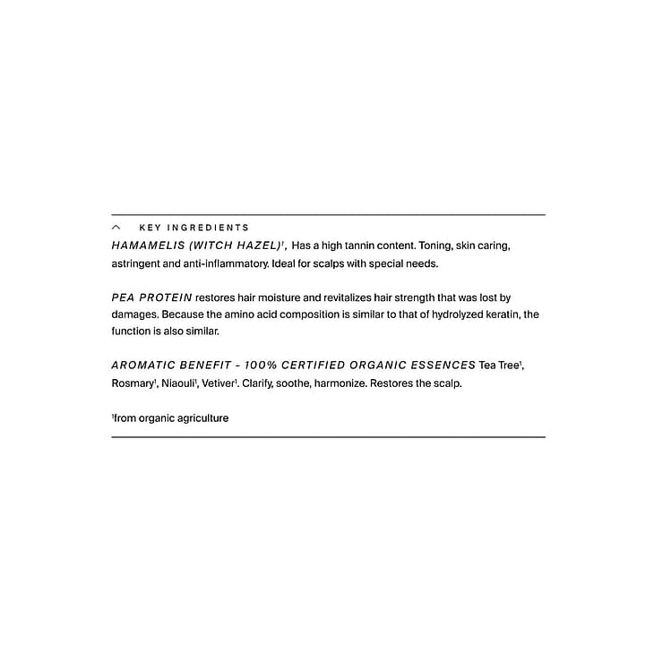 Eksklusiv og økologisk balsam der lindre en hovedbund der er i ubalance - både fedtet, skæl eller tør hovedbund.