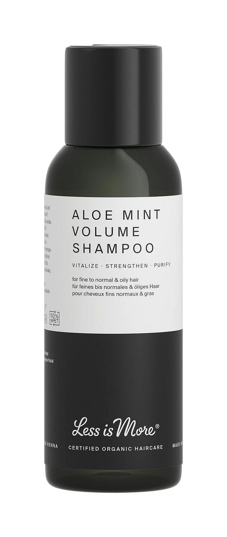 Denne eksklusive, plejende og økologiske Aloe Mint Volume Shampoo har en vitaliserende formel fri for sulfater. Den giver volume til et fint til normalt hår, og har en behagelig forfriskende og klargørende virkning på et hår med tendens til at fedte. Produktspecifikationer