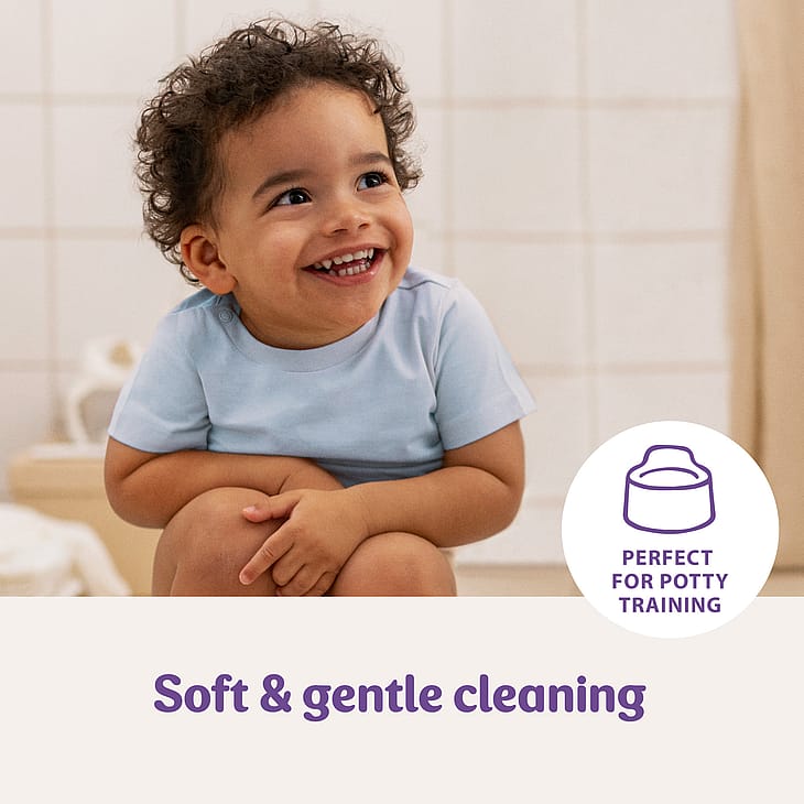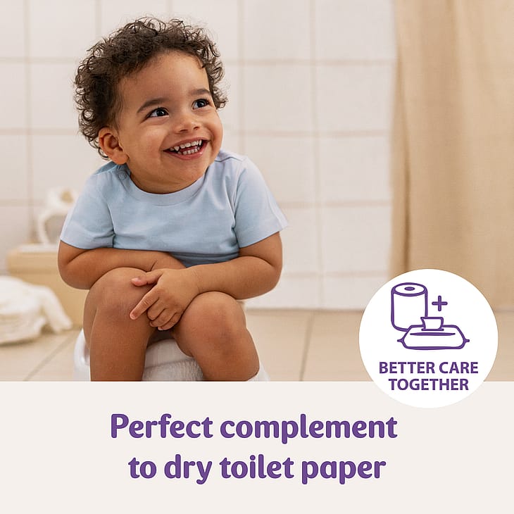 Rengør og fugter skånsomt ved bleskift og pottetræning. Arkene er fremstillet af fornyelige træfibre – præcis som tørt toiletpapir.