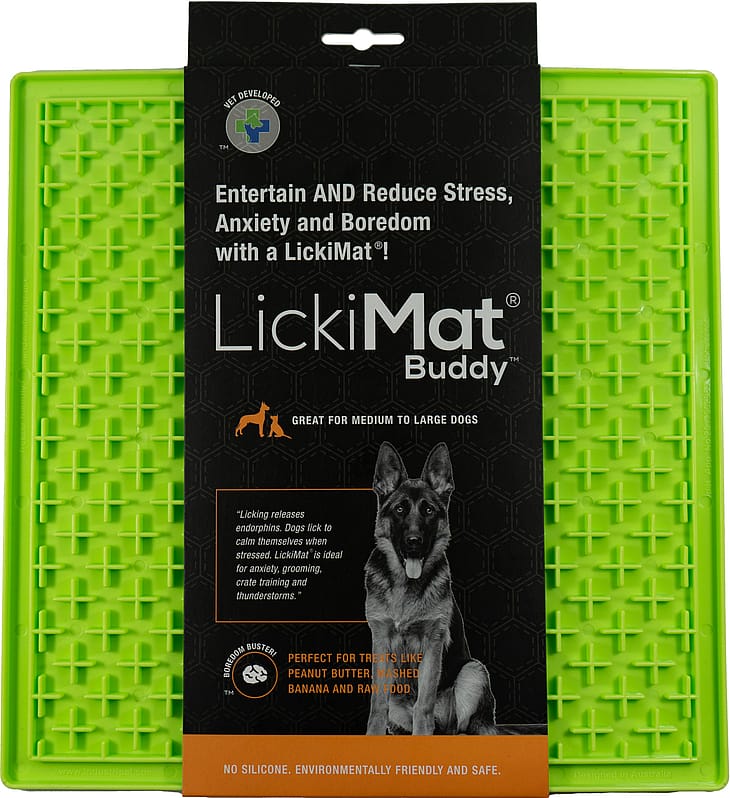 – LickiMat hjælper med at berolige og berolige dit kæledyr, mens de nyder deres yndlingsgodbid ved at hjælpe med at frigive endorfiner gennem fremme af slikning.