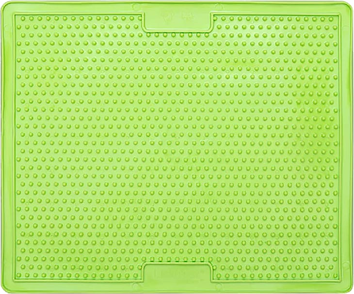– Veterinærudviklet LickiMat hjælper med at berolige og berolige din hund, mens den nyder deres yndlingsgodbid ved at hjælpe med at frigive endorfiner gennem fremme af gentagne slikker. Fantastisk til når du går hjemmefra, fantastisk til stressede tider såsom dyrlægebesøg, injektioner, badetid, negleklipning, skadesrestitution samt tordenvejr og fyrværkeri. Husk at træne og overvåge dit kæledyr første gang du introducerer dem til LickiMat.