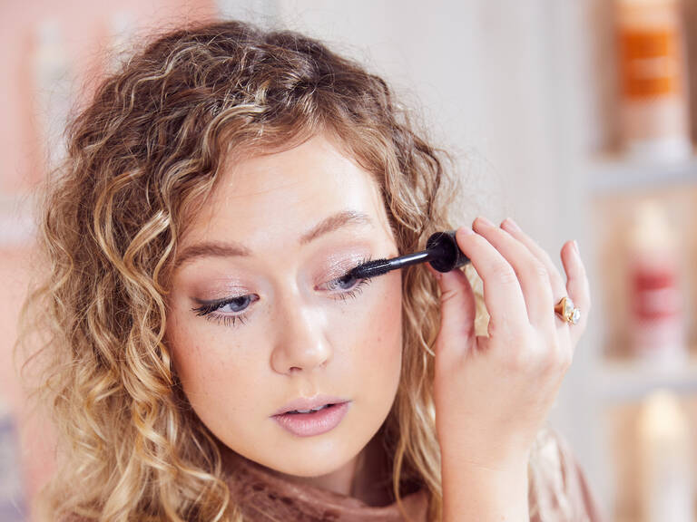 Efter, at Maria har tegnet sine bryn op, så bruger hun Superhero Mascara til at definere sine vipper med.