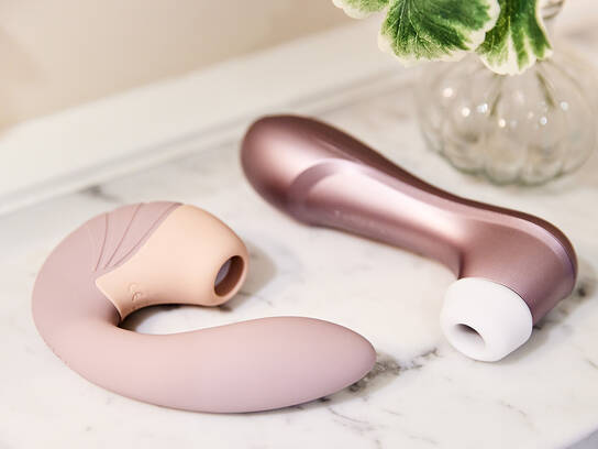 Det her unikke stykke sexlegetøj gør det muligt for både dig og din partner at opnå skøn nydelse! Satisfyer Double Joy er nemlig en U-formet par-vibrator, som stimulerer G-punktet på kvinden og glansen på manden på én og samme tid.