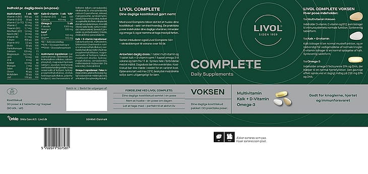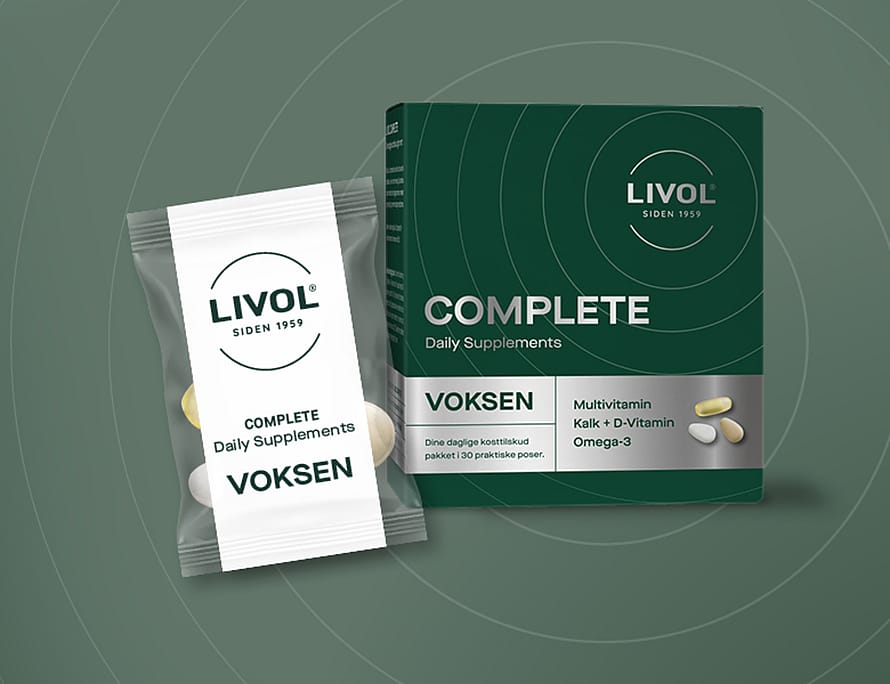Livol Complete Voksen er udviklet i Danmark med udvalgte ingredienser og høj kvalitet – så du kan føle dig tryg ved det, du tager hver dag.