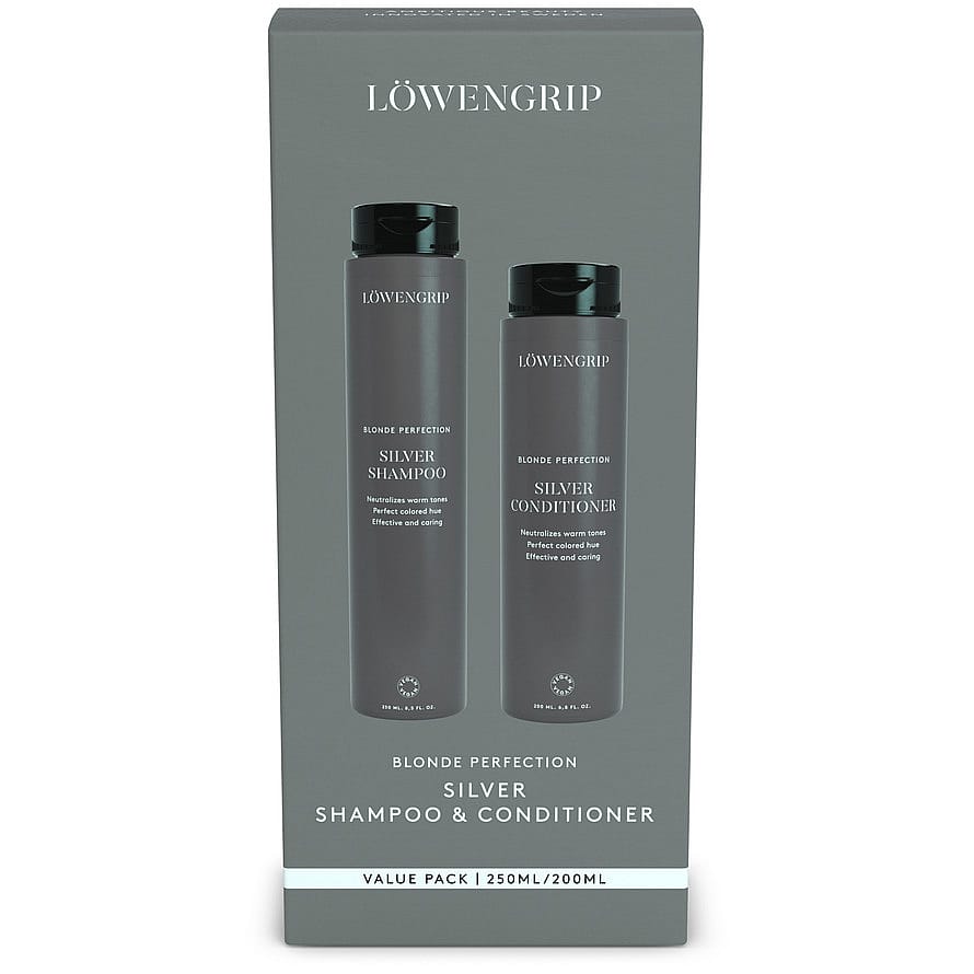 værdi af 280,-Duopack! Blonde Perfection er en silverserie, der med violette pigmenter effektivt neutraliserer varme toner, og giver håret en kølig blond nuance, samtidig med at det fugtgives, blødgøres og tilføjes glans. Håret beskyttes mod UV-stråling og frie radikaler. Har en frisk duft af mango og fersken. Udviklet til at dæmpe varme toner i blondt hår. Kan også bruges til at neutralisere varme toner i mørkere hår.