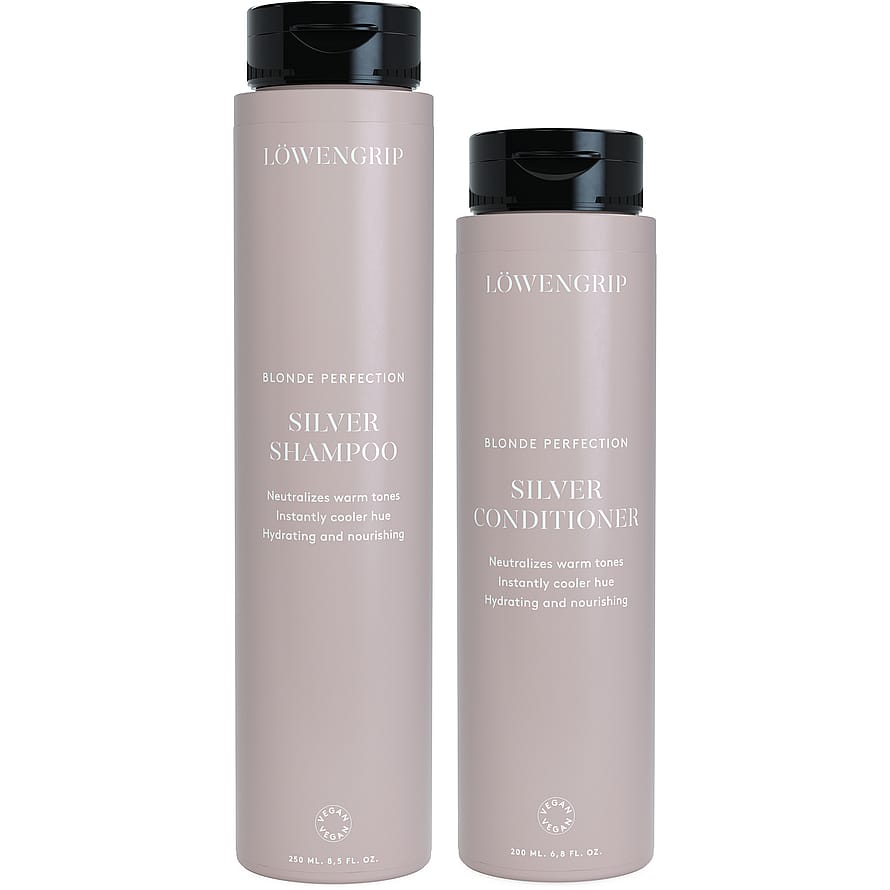 Duopack! Blonde Perfection Silver er en plejende sølvserie sder effektivt neutraliserer varme og gule toner i blondt og gråt hår, for en øjeblikkeligt køligere nuance. Den farvebevarende serie virker også til at fugte, blødgøre og give glans. Produkterne er beriget med varmebeskyttende ingredienser samt moringaolie og granatæbleekstrakt til hydreret og glansfuldt hår. Kan også fjerne varme toner i farvet mørkt hår. Med en uimodståelig duft af mango og fersken.