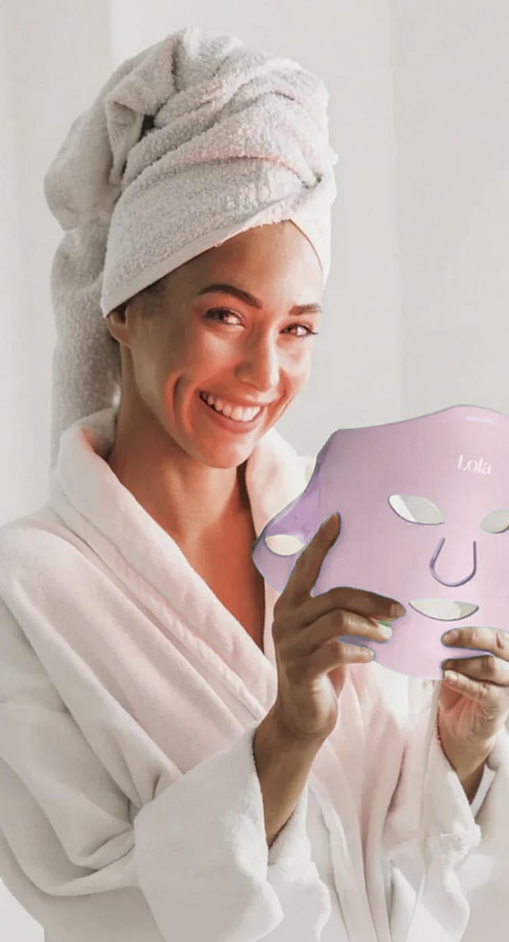 Lola Super Glow LED masken fra LOLA er udstyret med 6 lysindstillinger, der er med til at fremme kollagenproduktionen, reducerer rynker og urenheder.