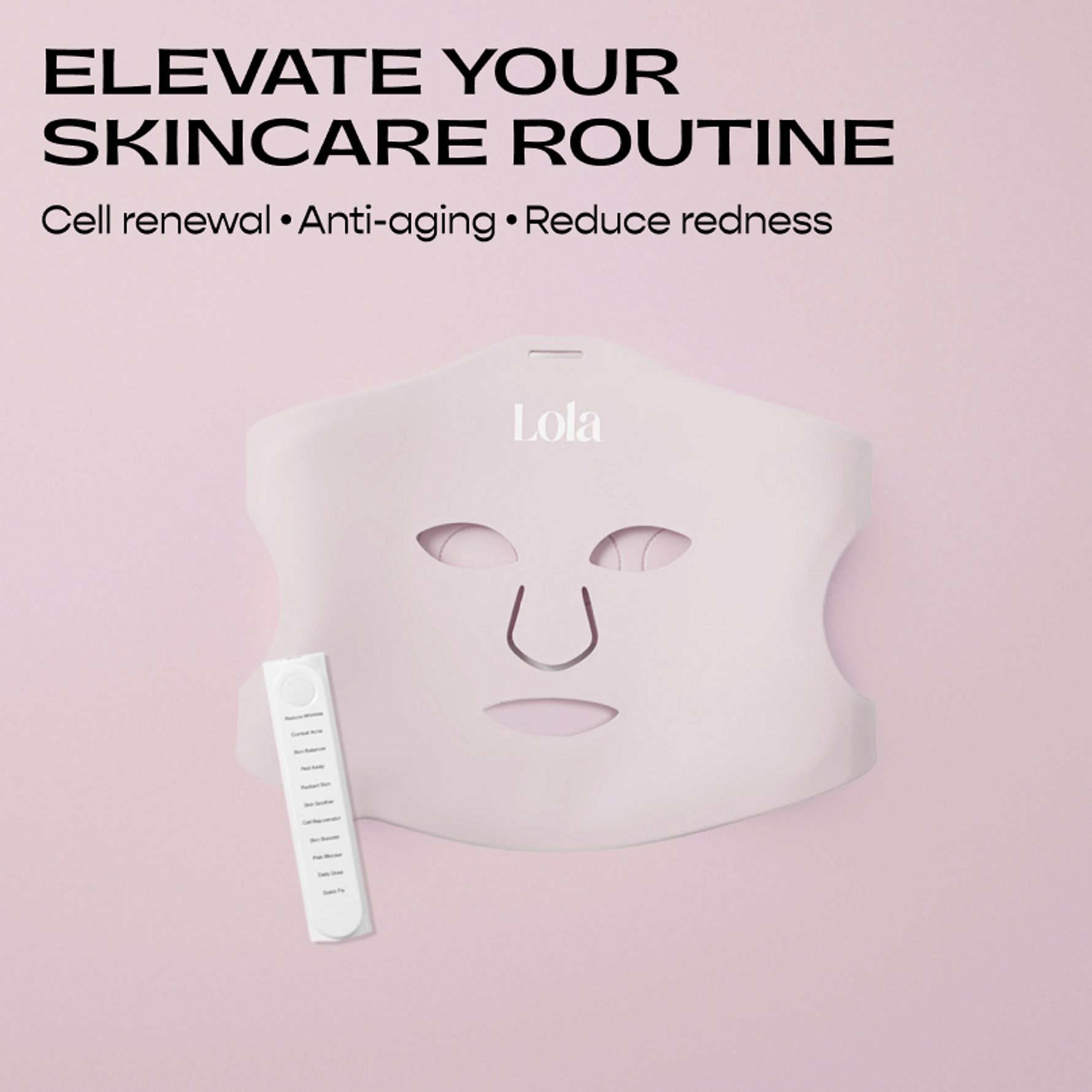 Lola Super Glow LED masken fra LOLA er udstyret med 6 lysindstillinger, der er med til at fremme kollagenproduktionen, reducerer rynker og urenheder.