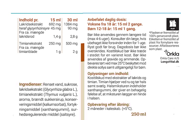 | Timianekstrakt | 250 mg | 500 mg |