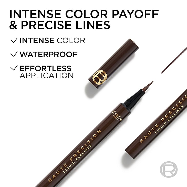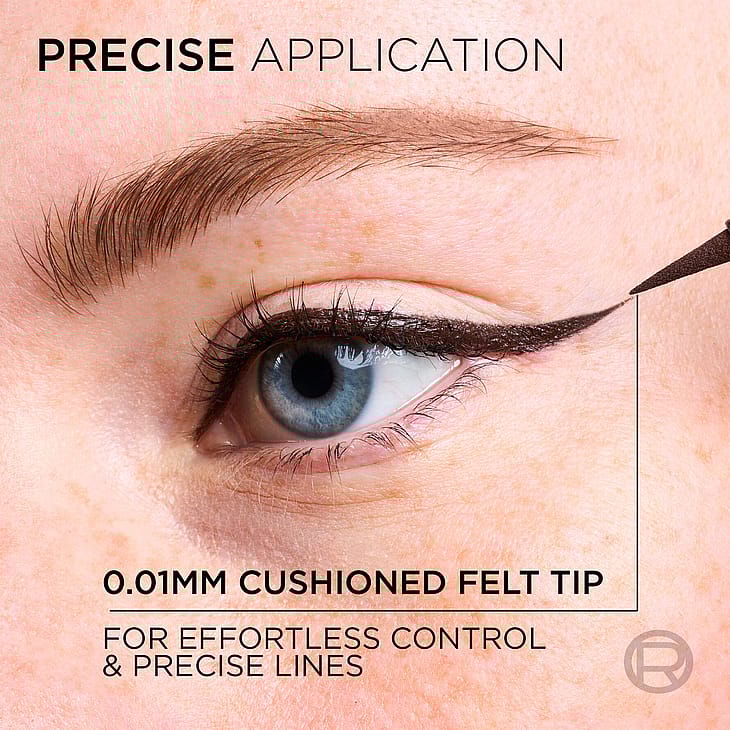 L'Oréal Paris Haute Precision Felt-tip Eyeliner giver perfekt definerede øjne. Denne avancerede flydende eyeliner har en 0,01 mm blød filtspids som er designet for nem kontrol og præcis påføring. Den giver en intens, levende farve og skaber skarpe linjer, der forbliver fejlfri i op til 24 timer*.