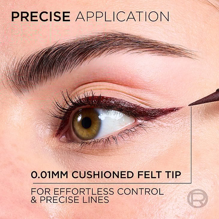 L'Oréal Paris Haute Precision Felt-tip Eyeliner giver perfekt definerede øjne. Denne avancerede flydende eyeliner har en 0,01 mm blød filtspids som er designet for nem kontrol og præcis påføring. Den giver en intens, levende farve og skaber skarpe linjer, der forbliver fejlfri i op til 24 timer*.